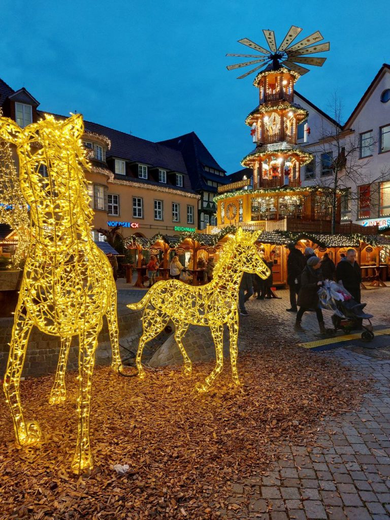 Bei bestem Wetter fand Anfang des Monats der zweite Ausflug unserer Gemeinde in diesem Jahr statt. Diesmal ging es zum Weihnachtsmarkt nach Hameln. Viel zu berichten gibt es da nicht, außer, dass es ein sehr schöner Ausflug war. Aber müssen es gleich drei Stunden sein? Hier schreibt nun einer, der nicht so der „Weihnachtsmarkt-Typ“ ist und allein den Weihnachtsmarkt in Vahlhausen favorisiert. Drei Stunden können wirklich sehr lang werden, wenn man bedenkt, dass sich die Hälfte der Angebote aus Buden mit Glühwein oder Speisen rekrutierte. Dann viel Kunsthandwerk, zum Teil aber mit Angeboten aus der chinesischen Volksrepublik. Irgendwann hätte ich jeden der Anbieter beim Vornamen ansprechen können.