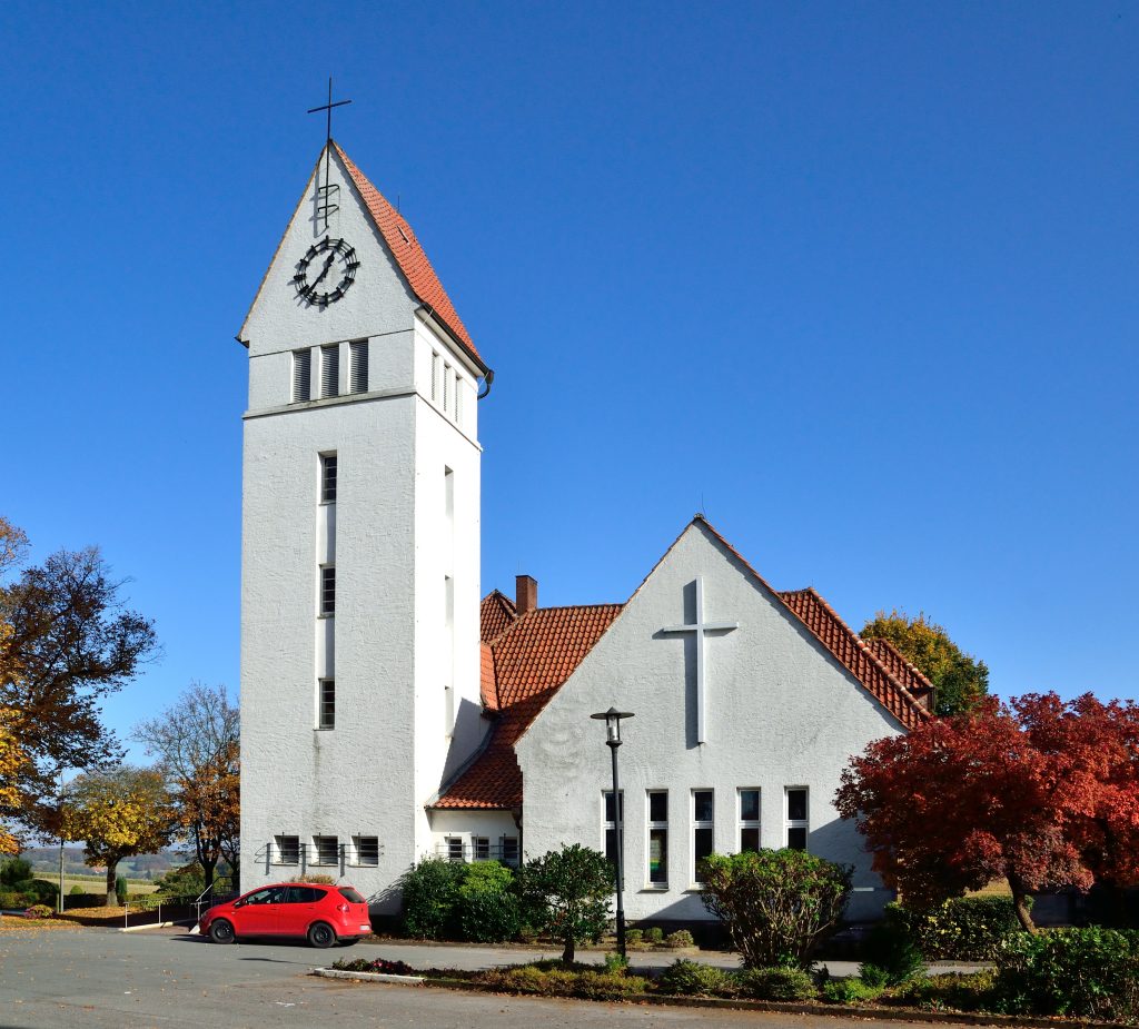 Doch irgendwann genügte auch er den Anforderungen nicht mehr. Neue Räumlichkeiten mussten her. In den Jahren 1982/1983 konnte ein Anbau an die Kirche errichtet werden, der nicht nur Gruppenräume verschiedener Größen bereitstellt, sondern mit dessen Hilfe auch die Kirche bei besonderen Gelegenheiten erweitert werden kann. So hat Vahlhausen eine Kirche erhalten, die von einigen mit leichtem Spott als „Kirche auf Rädern“ bezeichnet wird, weil das meiste in ihrem Innenraum beweglich ist – bis hin zur Kanzel. Es ist beileibe nicht die größte Kirche in Lippe, es mag sein, dass sie auch nicht die schönste ist – aber es ist unsere Kirche und wir sind (selbst wenn es ein wenig hoffärtig klingen mag), ja wir sind auch ein wenig stolz auf sie.