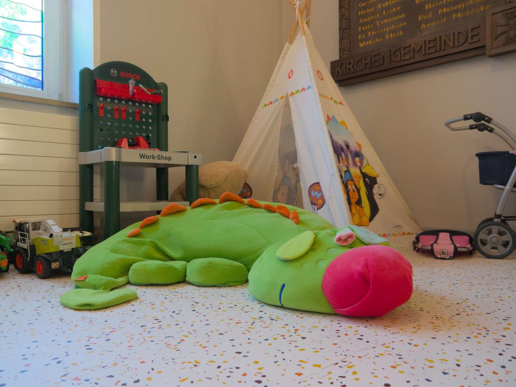 mit Kirchenorchester und Cafeteria