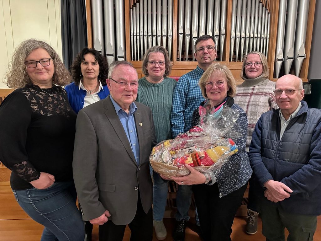 335 Orchesterjahre – Jubilare bei Jahreshauptversammlung sorgen für Staunen Ende Januar trafen sich die Mitglieder unseres Kirchenorchesters zur Jahreshauptversammlung. Unser musikalischer Leiter Lothar Tarnow fand lobende Worte für seine MusikerInnen. „Das Niveau unserer Musik steigt stetig an und ich freue mich, dass wir ein immer ausgefeilteres Repertoire bieten können. Da steckt viel Arbeit drin.“ Er hielt aber auch zu vollem Einsatz bei den Proben an, um weiter neue Musikstücke erarbeiten und bald in Kirche und Konzertsaal präsentieren zu können. Es herrschte eine positive Stimmung unter den Mitgliedern, die nicht nur Lothar Tarnow, sondern auch ihre Vorsitzende Susanne Sundhoff mit besonders viel Applaus für ihre unermüdliche und gute Arbeit für das Orchester bedachten und sich herzlich bei beiden bedankten. Ein Dank ging aber auch an alle Mitglieder des Orchestervorstandes und Mitglieder, die sich auch über den Einsatz an ihrem Instrument hinaus für das Orchester engagieren. Auf einen Punkt der Tagesordnung haben sich auch in diesem Jahr wieder alle gespannt gefreut: Die Ehrungen für langjährige Orchestertreue. Schon in den letzten Jahren haben wir immer wiedergestaunt, wie lange unser Kirchenorchester ein musikalisches Zuhause für seine Mitglieder ist und siebegleitet. Das zeigte sich auch 2026 wieder: Für 10 Jahre Mitgliedschaft im Orchester erhielt in diesem Jahr Peter Schneider die silberne Nadel des Landesposaunenwerkes, der am Baritonsaxofon für kräftige tiefe Klänge sorgt. Die goldene Nadel für 20 Jahre Orchesterzugehörigkeit wurde Carsten Herold geehrt, der an der Trompete aktiv ist. Schon seit ihrer Jugend ist Uta Obermeier an ihrer Klarinette und am Tenorsaxofon als Vahlhauserin dabei, sie durfte eine Urkunde des Landesposaunenwerkes und ein Präsent für 40 Orchesterjahre in Empfang nehmen. Ebenfalls aus dem Orchester nicht wegzudenken sind Elke Lambracht, Petra Lambracht und Susanne Lewecke. Sieerhielten Urkunden und individuelle Geschenke für ganze 50 Jahre an Horn, Bariton und Trompete und ernteten riesigen Applaus. Schon seit 55 Jahren gehört Hartmut Zippel zur Orchesterfamilie, der nicht nur am Horn aktiv ist, sondern auch mit seinem Keyboard den Vahlhauser Sound bereichert und im Lauf der Jahre die „Technikabteilung“ des Orchesters mit aufgebaut hat. Ein besonderes Highlight auf dem Tagesordnungspunkt der Ehrungen stand unser Dirigent Lothar Tarnow höchstselbst im Mittelpunkt: Seit nunmehr 60 Jahren schwingt er den Taktstock, ein Jubiläum, das sich nur Wenige auf die Fahne schreiben können. „Ich freue mich einfach, mit euch gemeinsam weiter gute Musik zu machen.“, so sein Wunsch für die kommenden Jahre. Mit Urkunde, einer goldenen Brosche mit Taktstock und Partitur und tosendem Applaus seiner Mitglieder bedacht, kann er tatsächlich auf eine unglaubliche Zeit zurück- und tollen Konzerten entgegenblicken, denn nach wie vorentwickelt er ständig neue Ideen und Pläne für die weitere musikalische Ausgestaltung des Orchesterprogramms. So wird weiter fleißig geprobt, denn neue Gottesdienste und Konzerte stehen an. Freuen Sie sich auf „Von Classic bis Pop im Frühling“ am 18. April in der Stadthalle Detmold (Tickets sind bereits erhältlich),in diesem Jahr mit Rockröhre Caroline Buba als Special Guest, und weiterhin wunderbare musikalische Begleitung kommender Gottesdienste!